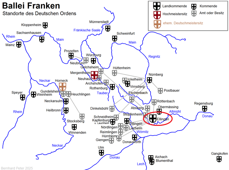 Abb.: die Deutschordenslandkommende Ellingen im Zusammenhang mit den anderen Kommenden und Besitzungen der Deutschordensballei Franken
