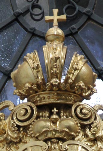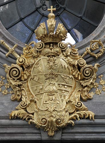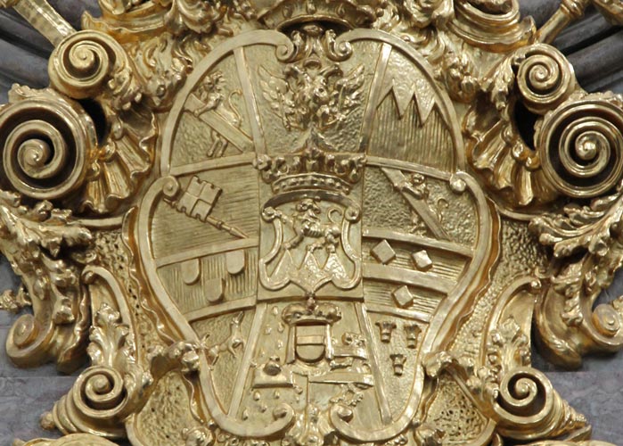 Über den beiden Eingängen, den Durchgängen zum Dom, befindet sich jeweils eine prächtige Kartusche mit dem Schönborn-Wappen: