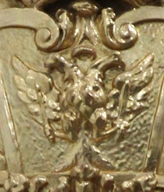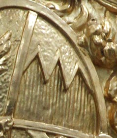 Laubkrone überhöhten Kartusche die Inschrift zu lesen:
