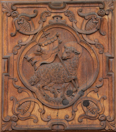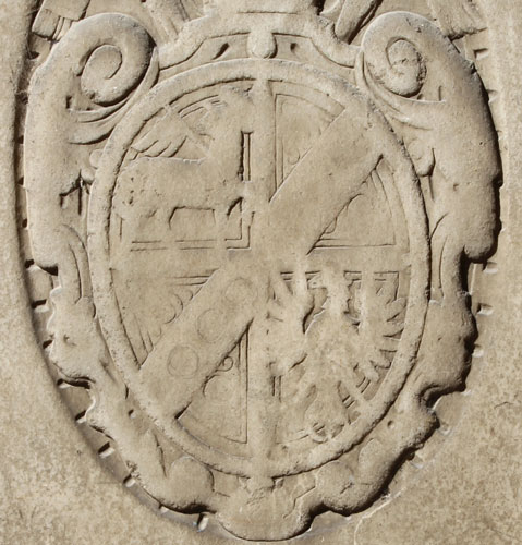 Ovalkartusche sind zwei hier silberne Schlüssel schräggekreuzt.