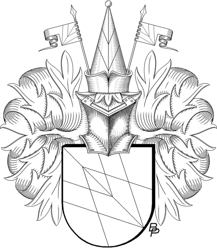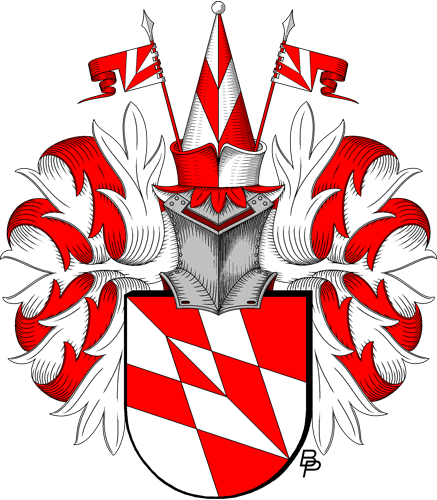 Entwurf Schildbild: Alexander Gumpp 2012, Entwurf Helmzier: Wappenstifter und Forum "Heraldik und Kunst" 2012. Finale Gestaltung und Aufriß: BP 2012.