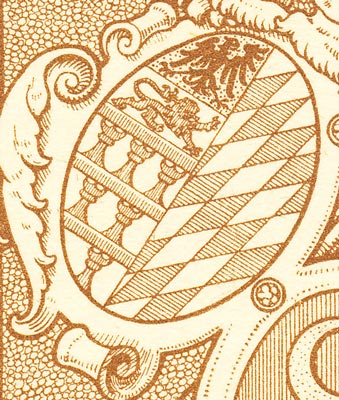 Dieses Wappen der Bayerischen Benediktinerkongregation ist hier gewendet. Es ist gespalten, rechts (also hier spiegelverkehrt) silbern-blau schräggerautet (Bayern), links unter goldenem Schildhaupt mit schwarzem Adler in Silber drei rote Leisten oder Fäden, begleitet in Platz 1 von einem schreitenden roten Löwen und in den übrigen Plätzen von sechs (3:2:1) roten Kelchen, Bechern oder Pokalen (Siebmacher Band: Un Seite: 461 Tafel: 338, Band: Kro Seite: 133 Tafel: 97, vgl. auch Band: FstA Seite: 188 Tafel: 228-230). Das ist nun eine wirklich aufregende Kombination - die Wittelsbacher Rauten treffen hier auf das Wappen der aus Como stammenden und auch in Rom und Mailand ansässigen italienischen Adelsfamilie Odescalchi! Der Grund ist der, daß hier die Gründer der Kongegration gemeinsam verewigt werden, auf der Seite Bayerns war das Kurfürst Maximilian II. Emanuel (11.7.1662 - 26.2.1726, Kurfürst 1679-1706 und 1714-1726), und auf der Seite des Papstes war das Innocent XI, der mit bürgerlichem Namen niemand anderes war als Benedetto Odescalchi (19.5.1611-12.8.1689, Papst 1676-1689), übrigens einer der bedeutendsten Päpste des 17. Jh., der sich durch eine konsequente Sanierung der Finanzen und die Eindämmung der Vetterleswirtschaft wohltuend von seinen Kollegen abhob. Am 26.8.1684 wurde die Kongregation durch das Breve "Circumspecta" gegründet, durch die Säkularisierung wurde sie aufgelöst, und am 5.2.1858 wurde sie wiederhergestellt.
