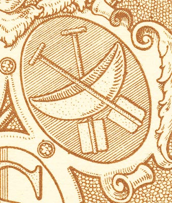 eine Haus- oder Steinmetzmarke. Das Wappen der Ehefrau Marie