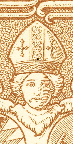 Abtsstab. Die Kartusche heraldisch links oben zeigt das