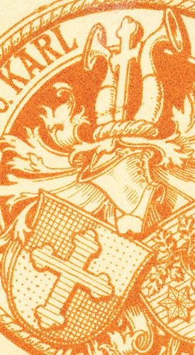 (farbiger Klischeedruck, 5.7 x 5.0 cm). Es handelt sich um eine