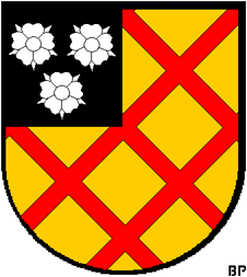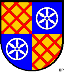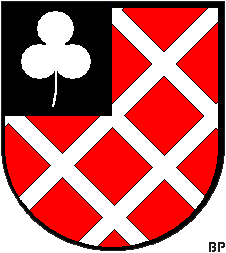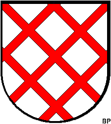 Rot ein silbernes Schräggitter. Helmzier ein roter