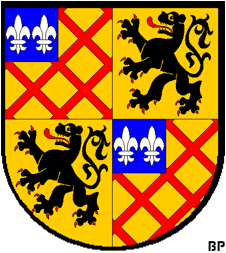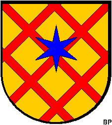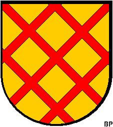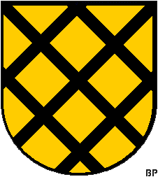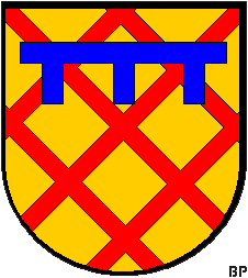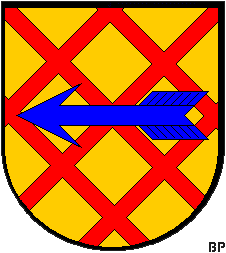 Herr von Dune, 1353: in Gold ein rotes Schräggitter, balkenweise darübergelegt ein blauer Pfeil. Nach Hauptmann. |