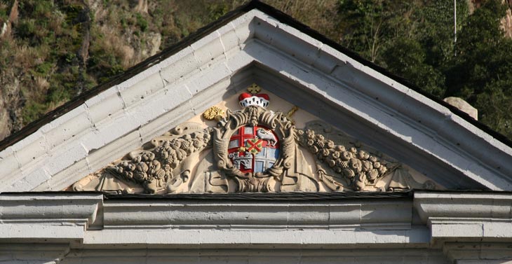 Das Wappen des Trierer Kurfürsten Johann Hugo von Orsbeck am Pagenhaus in Koblenz-Ehrenbreitstein