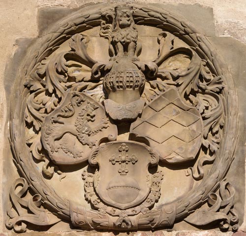 Treppenturm gequetscht. Es ist das Wappen der Könige von