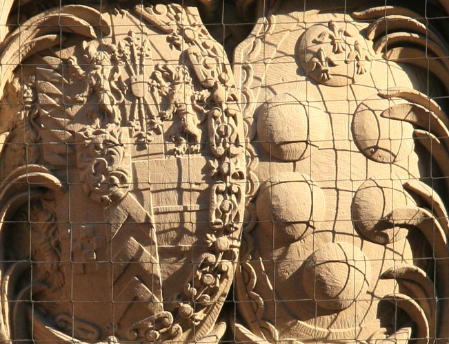 Das ursprüngliche Wappen zeigt nur rote Kugeln. Die Anzahl der Kugeln ist nicht immer sechs gewesen, sie betrug im 14. Jh. z. B. acht. Zu diesem Wappen gibt es auch eine Wappenlegende, die sechs roten Kugeln (sog. Palle) sollen angeblich Pillen darstellen und den Namen Medici - Ärzte - versinnbildlichen. Wie so viele andere Legenden eine nette Erzählung ohne stichhaltigen Wahrheitsgehalt, die auch durch Wiederholung nicht richtiger wird. |