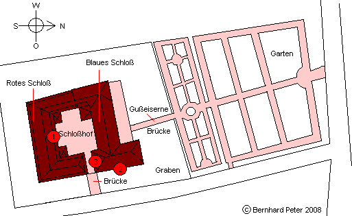 Abb.: Grundriß der Obernzenner Schlösser mit Position der Wappen