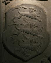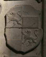 Abb. 3 (Mitte rechts): Wappenschild für Friedrich Magnus Graf zu Solms-Laubach (1.10.1521 - 13.1.1561). Das Solmser Wappen ist geviert: