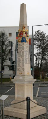 Heute finden wir noch eine Nachbildung der Postmeilensäule von 1997 am ehemaligem Wilsdruffer Tor auf der Annenstraße, heutiger Standort ist aber an der Freiberger / Herta-Lindner-Straße inmitten moderner Bebauung, neben dem Eingang der fernmeldehistorischen Sammlung der Telekom. Man findet die inmitten der modernen und teilweise reichlich heruntergekommenen Bebauung aufgestellte Säule, wenn man vom Postplatz weiter in Richtung Westen geht mit Blick auf die S-Bahnbrücke, rechterhand eine kleine Grünanlage passierend. An einer Straßenecke glänzen die Wappen wie ein Anachronismus. Eine weitere Nachbildung von 1969 wurde übrigens an der Münzmeisterstraße im Stadtteil Zschertnitz im Südosten Dresdens aufgestellt, diese Nachbildung war jedoch fehlerhaft hinsichtlich der Inschriften und wird hier nicht abgebildet oder besprochen.
