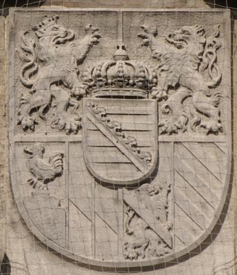 Abb.: Kronen-Darstellung, am Vorbau des Ostflügels im Innenhof angebracht.