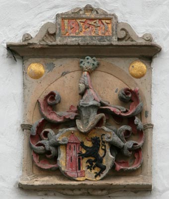 Während das herzoglich-sächsische Wappen die Landeshoheit und die Herrschaft über die Stadt ausdrückt, ist das Stadtwappen Symbol dafür, daß das Gewandhaus ein städtischer Bau im Eigentum der Stadt Meißen war.