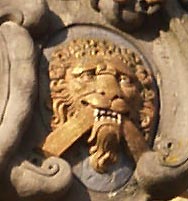 mit silberner Löwenmaske und goldenem Sparren abgebildet