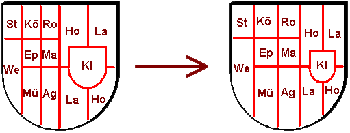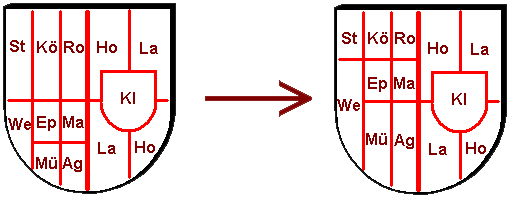 Aufteilung heraldisch unbillig. Korrekter ist der Aufbau gemäß