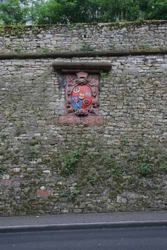 An den Festungswällen sind noch weitere Wappen des gleichen Bauherrn zu finden: An der nördlichen Face der Bastion Germanicus befindet sich ein Wappenstein von 1659. Der stark zerstörte Wappenstein wurde unlängst komplett erneuert (Abb. links), nur der Basisstein mit der Jahreszahl ist alt. Die Inhalte folgen dem zuvor Gesagten. An der östlichen Face der Bastion Alarm ist ein weiterer Wappenstein desselben Fürstbischofs, der befindet sich allerdings noch in dem Zustand, wie ihn die Franzosen in ihrem Zorn auf alle Symbole fürstbischöflicher Herrschaft hinterlassen haben (Abb. rechts).