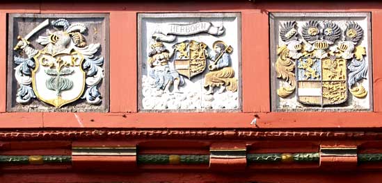 Ein Fries von Bürgerwappen rings um das Herborner Rathaus: