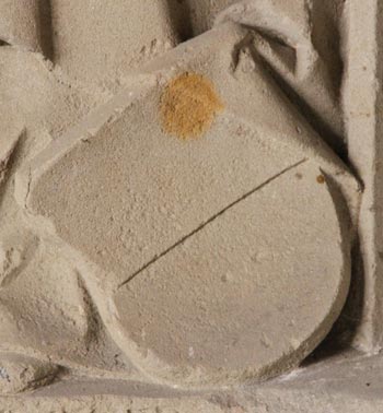Der dritte Schild, heraldisch unten rechts angebracht, zeigt einen Bären (Abb. unten links). Im Gegensatz zu den anderen drei Wappen wird dieses nicht durch die Stammtafeln von Humbracht bestätigt, wo eine Frau von Hohenzoll angegeben wird. Zu diesem Namen ist kein Wappen zu finden. Wolfert trifft die Zuordnung zur Familie von Bernstadt als wahrscheinlichste Möglichkeit (ohne Beleg). Diese führten in Gold einen schräggestellten schwarzen Bären, auf dem Helm mit schwarz-goldenen Decken ein wachsender, schwarzer, rotbewehrter und -gezungter Bär (Wolfert Tafel 48 Seite 69, Band: WüA Seite: 80 Tafel: 47).