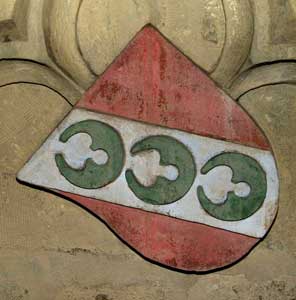 des Simses sind die Wappenschilde stark konkav gekrümmt, was