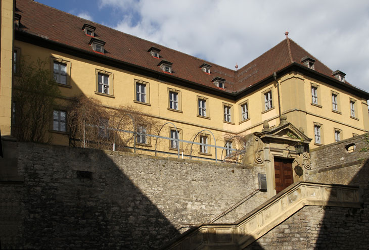 Das ist eine Rarität: Ein Wappenstein mit gleich fünf Fürstbischöfen auf einmal, der zudem Bischöfe aus zwei Bistümern friedlich vereinigt! Und so eine Kostbarkeit schlummert in einer kleinen 8000-Seelen-Stadt in Unterfranken: In Arnstein nördlich von Würzburg auf halber Strecke nach Hammelburg. Es handelt sich um den Wappenstein am Pfründnerspital, Marktstraße 61, das auf Veranlassung von Moritz von Hutten erbaut wurde. Er hatte eine besondere Beziehung zu Arnstein, weil er hier geboren ist (am 26.11.1503). Erst war er Dompropst in Würzburg, ehe er 1539 den Bischofssitz in Eichstätt bestieg. Das Spital war gedacht als Alten- und Pflegeheim, und das ist es auch heute noch.