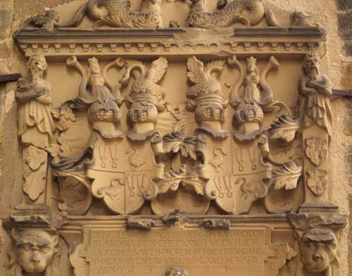 Schloß Thurnau - Teil (2): Wappen am äußeren Schneckenturm der Kemenate: