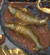 Feld 3: Grafschaft Mömpelgard, in Rot zwei aufrechte, abgekehrte goldene Barben (Fische) |