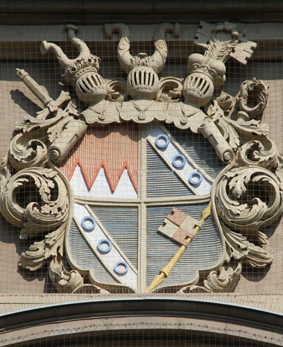 Abb.: auf 1576 datierte Spolie im Durchgang des Fürstenbaus: Wappen von Julius Echter von Mespelbrunn, ehemaliger Türsturz.