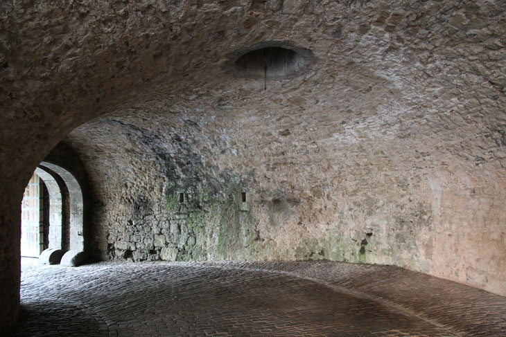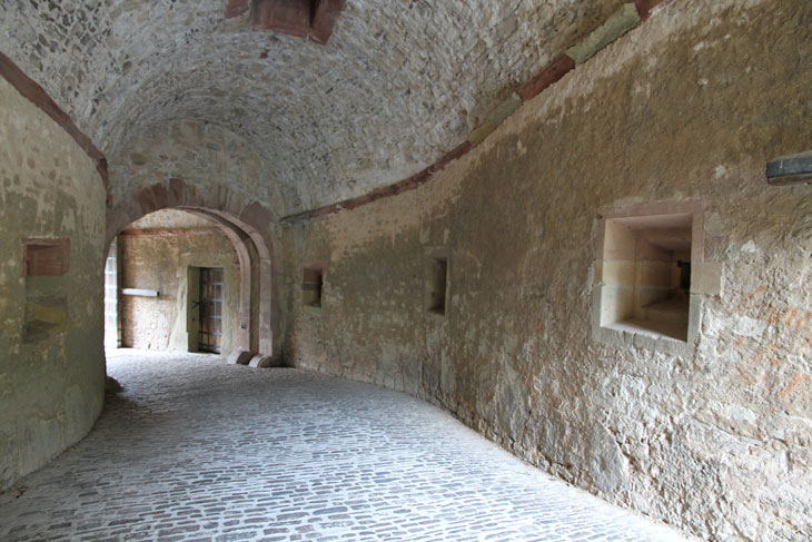 Abb.: gebogener Torweg im Schönborntor, links Feldseite