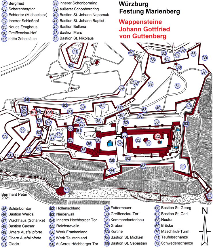 Wappenfundstellen dieses Fürstbischofs sind im Festungsgrundriß