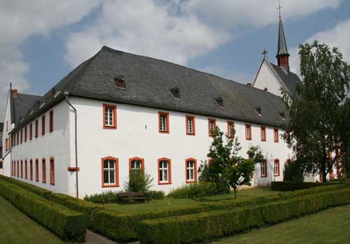 Die spätgotische Anlage wurde am Ufer der Mosel errichtet, Einweihung war 1465, ein Jahr nach dem Tod des Stifters. Dabei wurde nicht an bauplastischer Ausschmückung gespart, wie der wunderschöne Kreuzgang mit schönen Schlußsteinen und phantasievollen Konsolfigürchen an den Rippenenden beweist. In der 2. Hälfte des 18. Jahrhunderts wurden die Stiftsgebäude dem Zeitgeist entsprechend außen barockisiert. Aus dieser Zeit stammt auch der Moseltrakt und die hofseitige Nordfassade des Vierflügelbaus mit ihrem repräsentativen barocken Wappengiebel. Das Kardinalswappen stammt selbstredend nicht aus der Gründungszeit, denn Nikolaus von Kues ist ein Mann der Spätgotik.