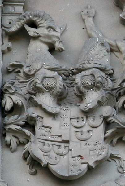 An der Schieferfassade befindet sich hoch oben ein prächtiges Allianzwappen im Stile üppiger Renaissance, durch ein kleines geschiefertes Dach vor den Witterungseinflüssen geschützt. Es ist das Wappen von Philipp I. Freiherr von Winnenburg und Beilstein (gest. 16.3.1583), 1549 Trierer Landhofmeister, 1551 Freiherr, 1561 Kammergerichtspräsident zu Speyer, 1563 kaiserl. Reichshofratspräsident, und seiner Frau, Ursula Gräfin von Rietberg.