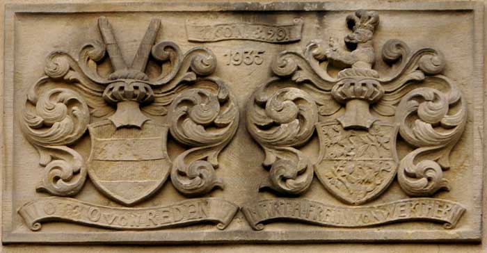 Abb.: Allianzwappen über dem Haupteingang von Reden / von Werthern