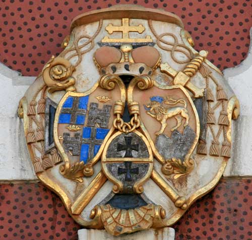 Landesherrschaft verweisend. Oberhalb der Schilde, aber unterhalb