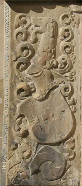 Auf einer Tafel im Innern der Kirche ist übrigens ein ganz ähnliches Wappen der Familie Menger, dort sind die Farben aber anders verteilt und das Freiviertel liegt links, nicht zu verwechseln.