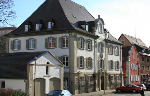Das Gebäude wurde 1590 als Stiftsherrenwohnung errichtet. 1775 wurde es umgebaut und im Stile der Zeit als Wallersteinscher Domhof umgebaut, aus dieser Zeit stammt das Wappen an der Fassade. Das aus dieser Zeit stammende, kunstvolle Treppenhaus ist besonders sehenswert. 1812-1819 wurde das Gebäude erst als Gymnasium genutzt, dann als Kameralamt. 1910 bekam das Wasserwirtschaftsamt hier seinen Sitz, 1995 bekam die Gewässer-Direktion Neckar hier ihre Außenstelle. Seit 2005 ist das Gebäude in Privatbesitz.