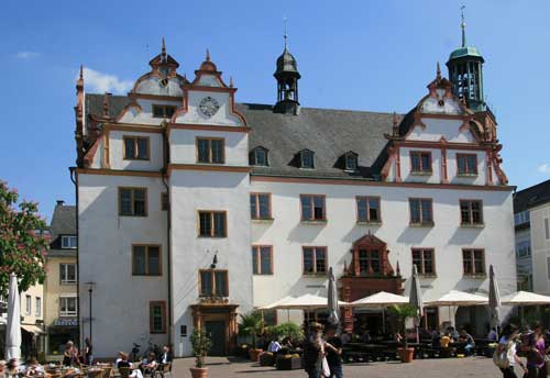 Das Alte Rathaus von Darmstadt entstand gegen Ende des 16. Jh. nach den Plänen von Wurstmann. Es wurde im 2. Weltkrieg vollständig zerstört und später äußerlich rekonstruiert.
