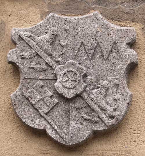 Straße vermauert. Es handelt sich um den Wappenschild des