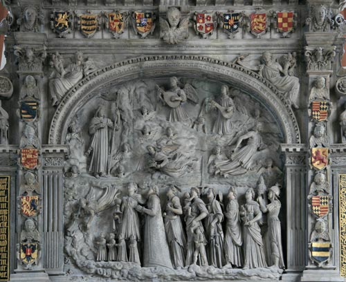 Abb.: Obere Zone, Relieffeld mit 16 Ahnenwappenschilden außenherum