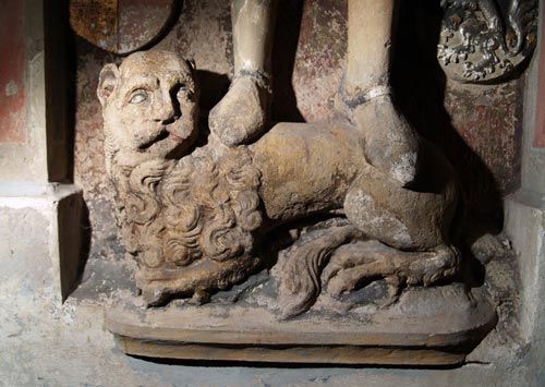 Abb.: Löwe zu Füßen des Epitaph für Johann (Hennichin) Kämmerer von Worms gt. von Dalberg (gest. 9.10.1415)