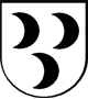 Variante 4: In Silber 3 (2:1) schwarze Mondsicheln, die oberen mit ihren Spitzen nach außen, die untere zunehmend. Helmzier wie oben. |