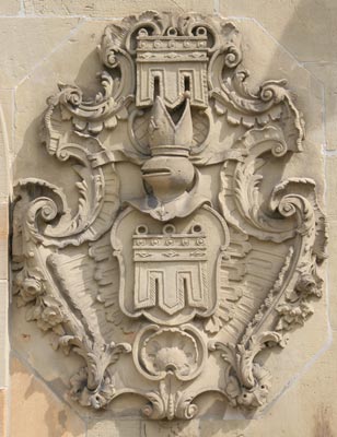 Die Pfalzgrafen von Tübingen hatten als Gebiete neben Tübingen Herrenberg, Böblingen, Sindelfingen, die Vogtei über Blaubeuren und den Reichsforst Schönbuch. Nach 1219 teilten sich die Pfalzgrafen von Tübingen in mehrere Linien auf: Horb, Herrenberg, Böblingen, Asperg. Rudolf I (ca. 1160 - 17.3.1219), Erbe der Tübinger Pfalzgrafschaft, hatte aus der Ehe mit Mathilde v. Gleiberg (gest. 1206) drei Söhne, Hugo V. Pfalzgraf v. Tübingen (ca. 1185 - 26.7.1216) und Rudolf II. Pfalzgraf v. Tübingen (ca. 1185 - 1.11.1247) sowie Wilhelm Graf v. Asperg-Giessen (ca. 1190 - ca. 1252/1256). Hugo V. Pfalzgraf v. Tübingen (ca. 1185 - 26.7.1216) hatte nur einen Sohn, Konrad I. Rudolf II. Pfalzgraf v. Tübingen (ca. 1185 - 1.11.1247) hatte als Söhne die Begründer der Linien zu Horb und zu Herrenberg, Hugo III. Pfalzgraf v. Tübingen-Horb (- ca. 1267) und Rudolf III. Graf v. Tübingen-Herrenberg (-12.5.1277). Wilhelm Graf v. Asperg-Giessen (ca. 1190 - ca. 1252/1256) hatte Söhne, die zu den Begründern weiterer Linien wurden: Rudolf IV. Graf v. Tübingen-Böblingen (- 12.5.1277) und Ulrich I. Graf v. Tübingen-Asperg (- 5.8.1283). Innerhalb kürzester Zeit waren die Pfalzgrafen somit in viele verschiedene Linien aufgespalten. Lange konnten sich die Pfalzgrafen jedoch nicht halten, sie verloren nach und nach all ihre Gebiete vor allem durch Verkauf an die Grafen von Württemberg. Als letzte der alten Herrschaften wurde 1381 Herrenberg verkauft. Der letzte Herrenberger Graf war Konrad II. Pfalzgraf v. Tübingen-Herrenberg (- 1391), er hatte zwar einen Sohn namens Heinrich III. v. Tübingen-Herrenberg, der aber vor dem Vater starb. Die letzte Linie der Pfalzgrafen von Tübingen starb 1634 mit Georg Eberhard Graf v. Tübingen-Lichteneck (1604 - 16.9.1634) im Mannesstamme und mit seiner Nichte Elisabeth Bernhardine v. Tübingen Herrin zu Lichteneck (11.10.1624 - 4.11.1666) endgültig aus. Der Entstehungszeitpunkt dieses städtischen Wappensteines liegt also jenseits des Erlöschens aller pfalzgräflichen Linien.