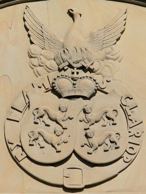hängt rechts an der Wand ein außergewöhnlicher Wappenstein.