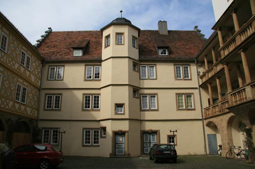 Abb.: Innenhof von Schloß Pfedelbach, Blick auf den Nordflügel, rechts die inneren Galerien der Eingangsseite.
