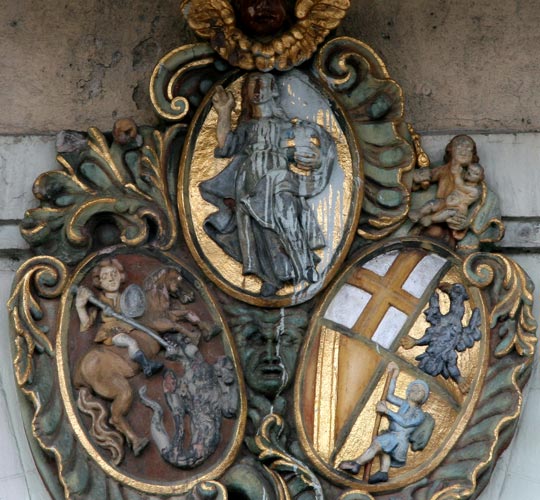 Oben, leider von Farbe bekleckert, sieht man in goldenem Feld