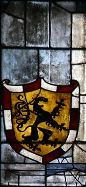 Feld 13: Burggrafentum von Nürnberg: Innerhalb eines silbern-rot gestückten Bordes in Gold ein schwarzer Löwe. Hier gewendet. Das ist die erste Komponente, mit dem das Hohenzollern-Wappen geviert wurde, noch ehe alle anderen Elemente hinzukamen. Feld 14: Markgraf Friedrich d. J. v. Brandenburg-Ansbach (17.1.1497-26.8.1536), 1511 Domherr in Würzburg, Domherr in Mainz, 1513 Dompropst in Würzburg, 1516 Propst an St. Gumbert in Ansbach, Domherr in Mainz, Eichstätt und Salzburg, 1532 Propst von Stift Haug in Würzburg. In Würzburg hatte er darauf spekuliert, zum Bischof gewählt zu werden, was aber nicht klappte. So suchte er ab 1519 seine Bestätigung im Kriegshandwerk und verteidigte die Festung Marienburg gegen die aufständischen Bauern 1525. Mit Kaiser Karl V. zog er gegen den französischen König Francois I. Bei der Belagerung von Marseille erkrankte er und verstarb 1536 in Genua. Feld 15: Markgraf Johann v. Brandenburg-Ansbach (9.1.1493 - 5.7.1525). Er begann mit einer geistlichen Laufbahn und wurde 1507 Domherr in Köln. Doch er wurde danach wieder weltlich. Zusammen mit seinem älteren Bruder Kasimir erzwang er 1515 die Abdankung seines Vaters. Daraufhin schlug er eine militärische Karriere ein: Bei der Belagerung Venedigs war er dabei, und 1516 ging er zu König Ferdinand nach Spanien, wo er kaiserlicher Generalkapitän und Vizekönig in Valencia wurde. Johann heiratete Germaine de Foix. 1525 schied er, vermutlich durch Gift, überraschend früh aus dem Leben. Feld 16: Fürstentum Rügen: In Gold aus einem roten, schwarz gefüllten Stufengiebel wachsend ein schwarzer Löwe (modifiziert). Rügen kam im frühen 16. Jh. ins Wappen der Markgrafen, nachdem das Fürstentum Markgraf Albrecht Achilles schon 1470 zugefallen war, als dieser von Kaiser Friedrich III. mit den Herzogtümern Stettin und Pommern belehnt worden war. 1648 mußte nach dem 30jährigen Krieg Rügen an Schweden abgegeben werden, entsprechend flog das Feld wieder aus dem Wappen der Brandenburger raus.