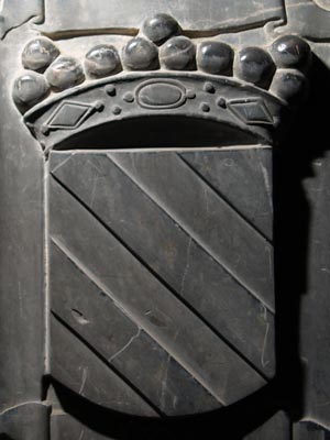 An der Südwand des südlichen Querschiffes der Pfarrkirche von Münstermaifeld befindet sich im Rücken der Kirchenbänke eine barocke Grabplatte aus schwarzem Marmor, 1,23 m x 2,33 m groß. Die Platte hat oben zentral ein aus zwei Vollwappen gebildetes Ehewappen und außen an den beiden Seiten je vier Einzelschilde einer Ahnenprobe, für die vier Großeltern oder die vier Urgroßväter jedes Ehepartners.