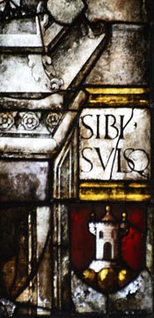 Die unterste Reihe des Fensters enthält die Stiftungsinschrift: Siegfried Pfinzing 1515 für sich und die Seinen - SIEGFRIDVS PFINZING SIBI SVISQ(VE) MDXV. Natürlich hat es, wie wir oben gesehen haben, sein Sohn Melchior gestiftet, denn Sebald verstarb 1514. Hier stiftete der Sohn des Verstorbenen, kaiserlicher Rat und Propst von St. Sebald, das Fenster im Namen und zum Gedächtnis des Vaters.