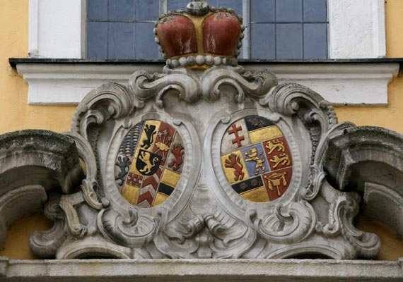 Abb. links: Wappen von Johann Christian Joseph Prinz bei Rhein zu Sulzbach (23.1.1700 - 20.7.1733):